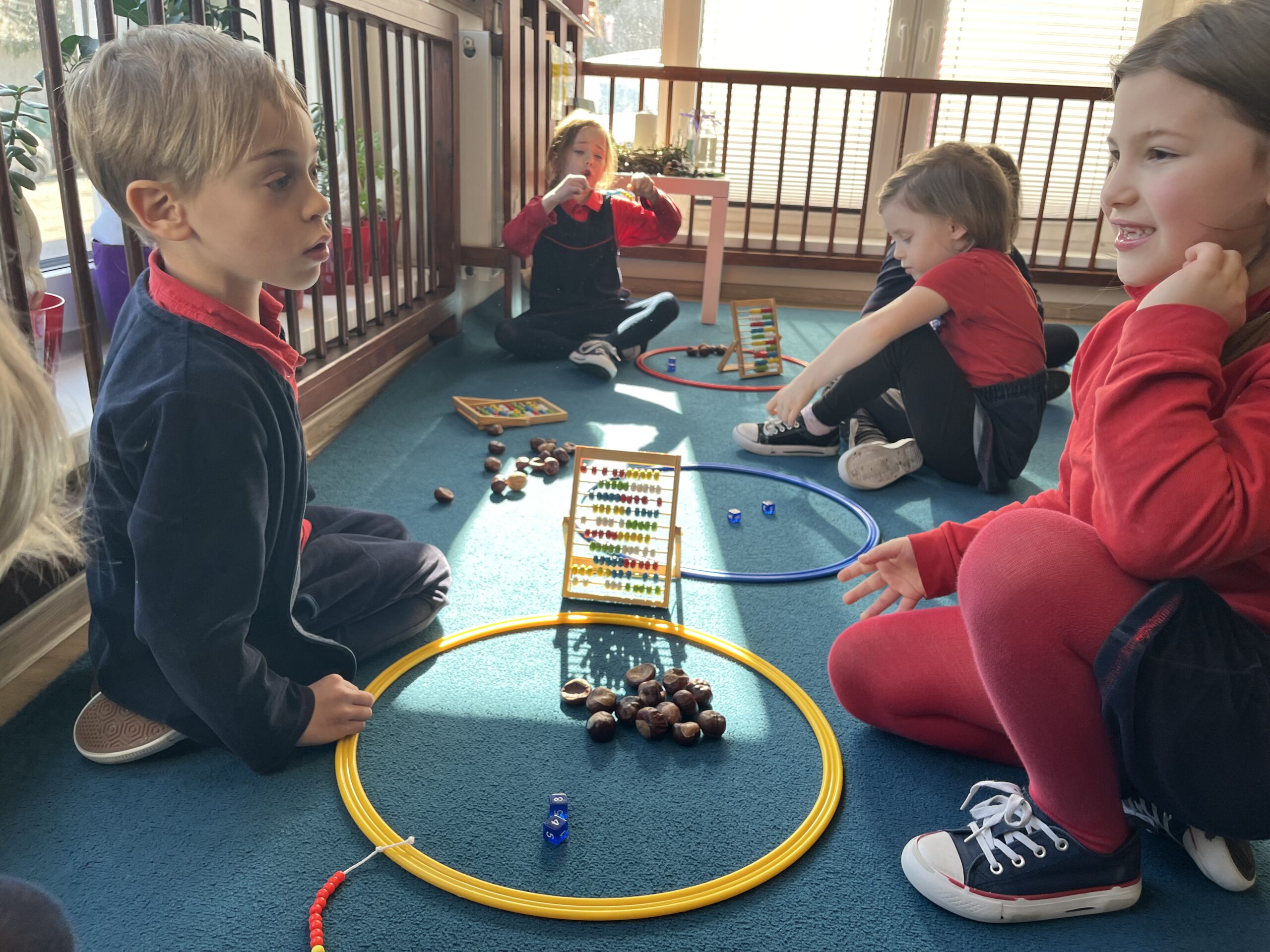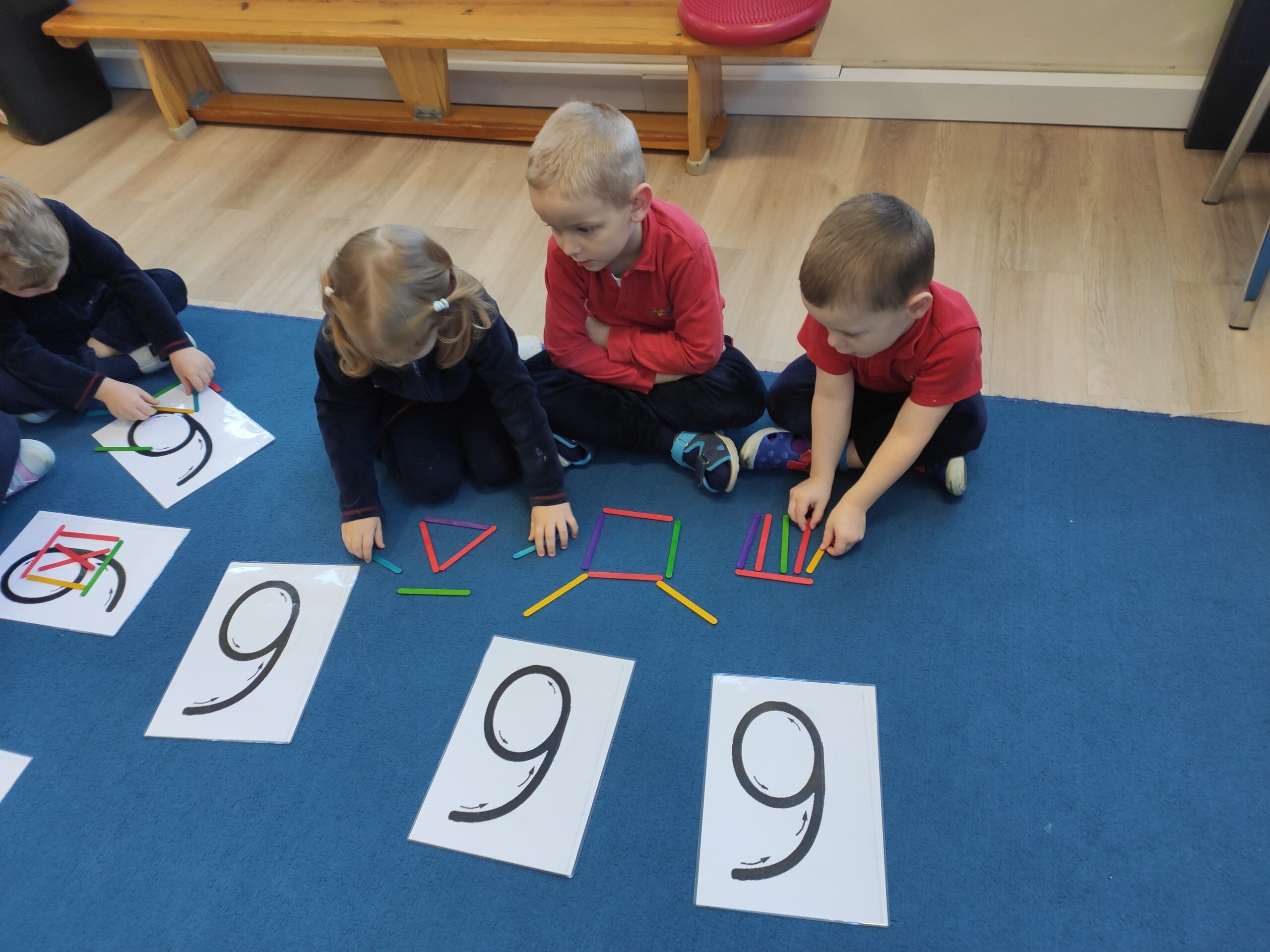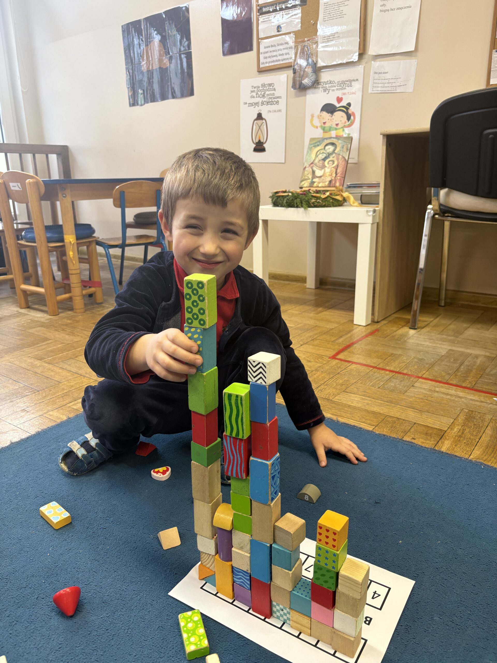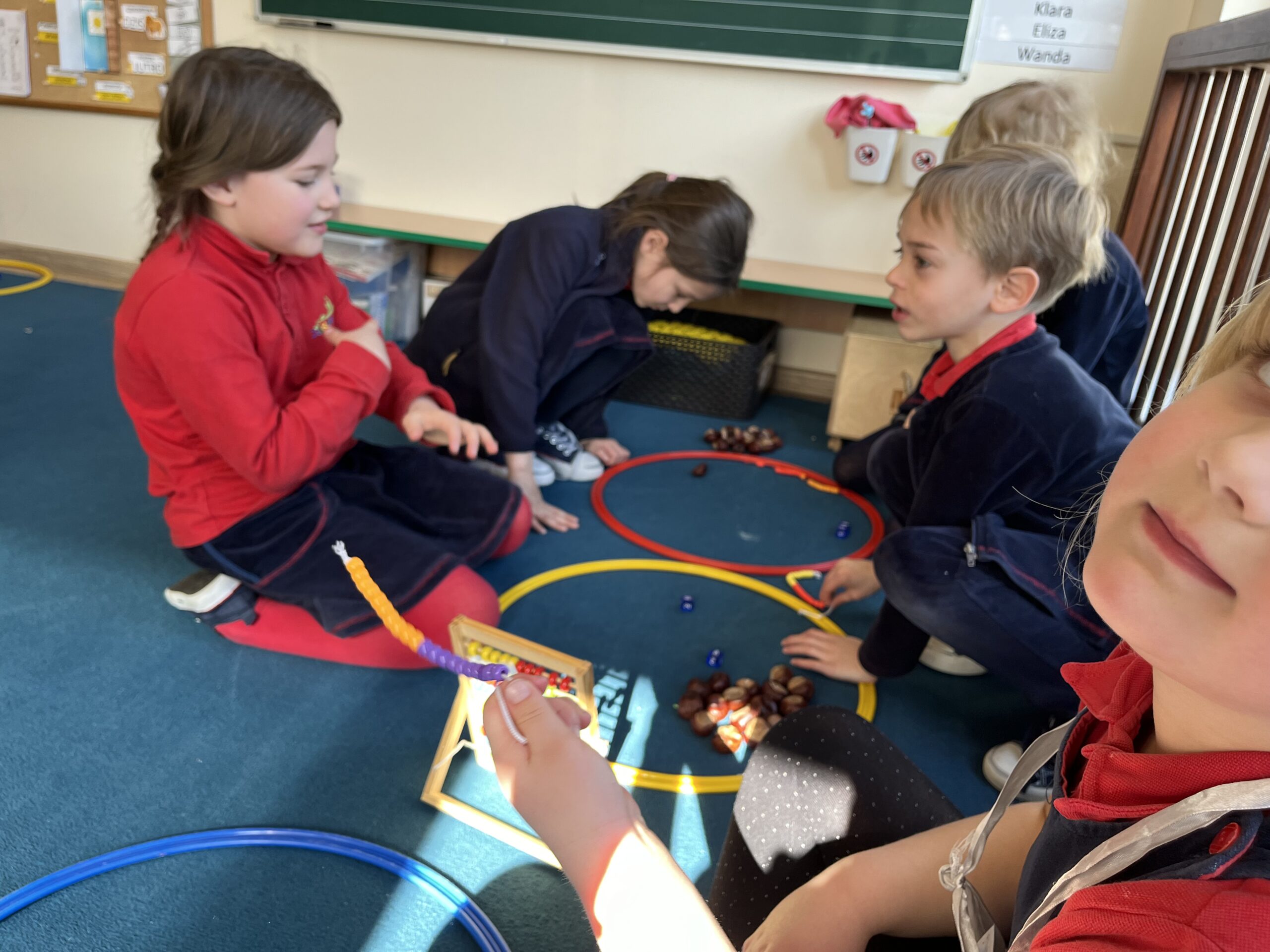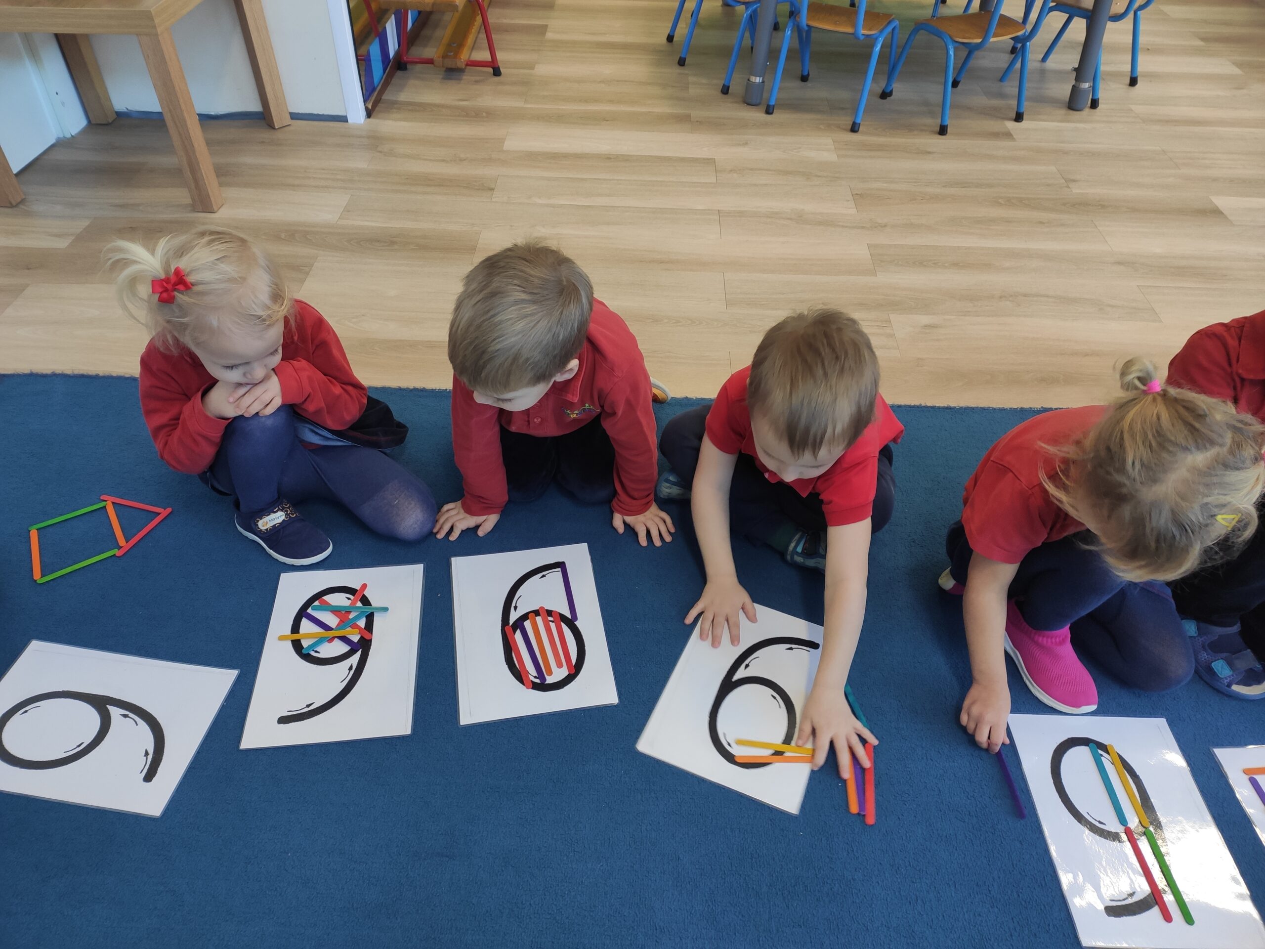 Podczas zajęć dzieci ćwiczyły rozpoznawanie cyfr, liczenie, proste działania matematyczne oraz poznawały figury geometryczne. Wszystko odbywało się w formie gier i zabaw, dzięki którym nauka była naturalna i angażująca. Ważnym elementem była także praca w parach i zasady uczciwej zabawy, które uczą dzieci wzajemnego szacunku i współdziałania.